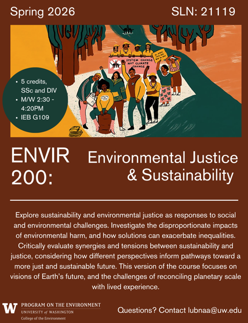 - ENVIR 200 Sustainability and Environmental Justice (Spring 2026)